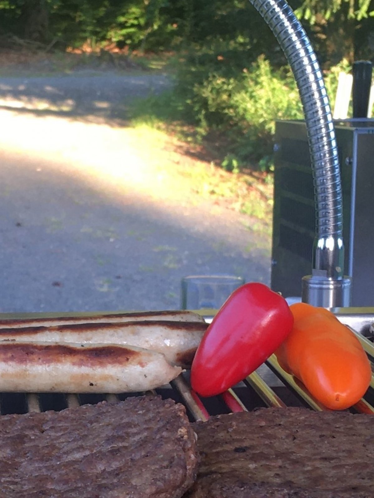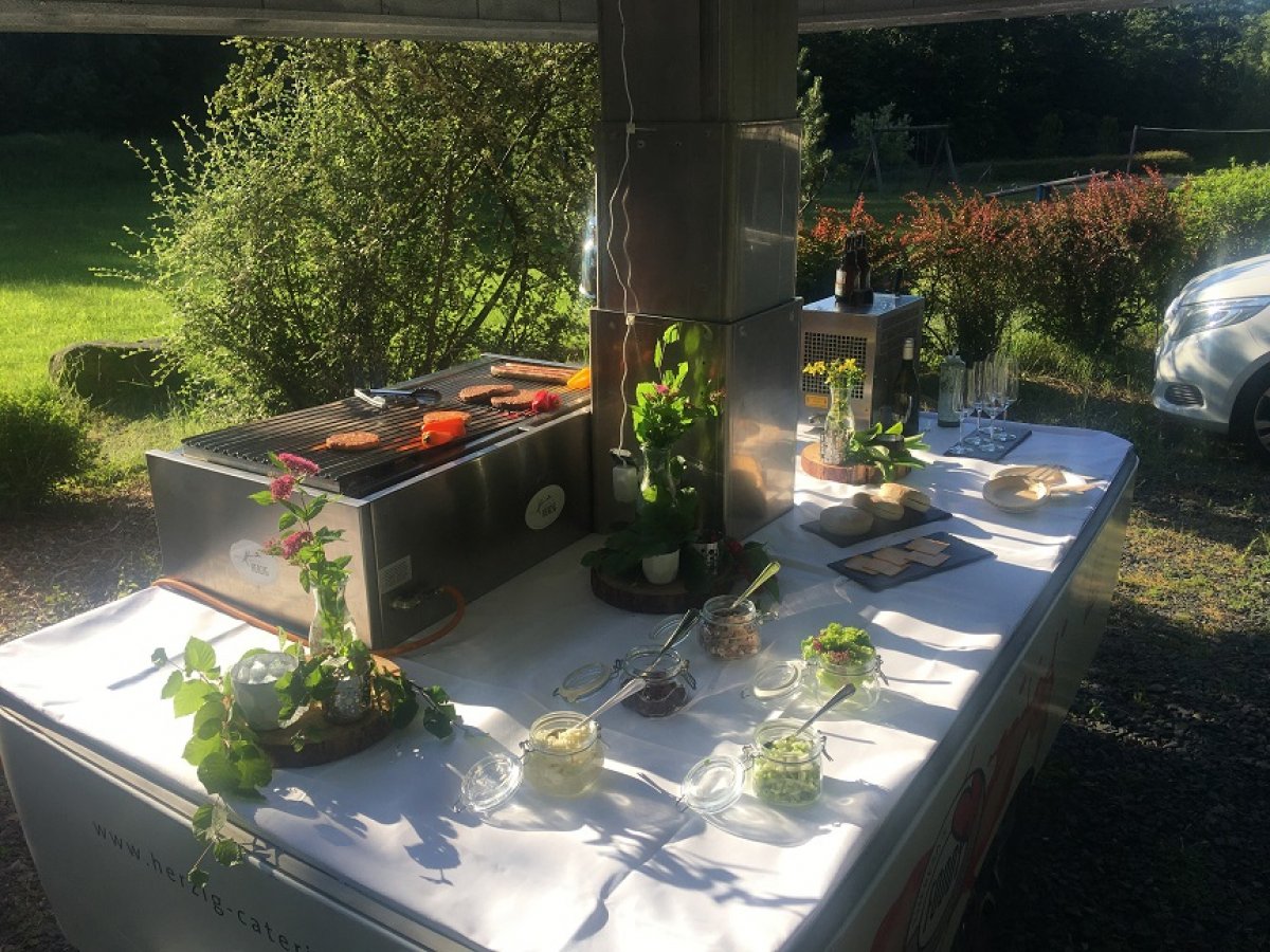 - Thüringer Rostbratwürstchen, Schweinekammsteaks, Halumikäse, Weizenbrötchen, Pommes Frites, Senf, Ketchup, Mayonnaise